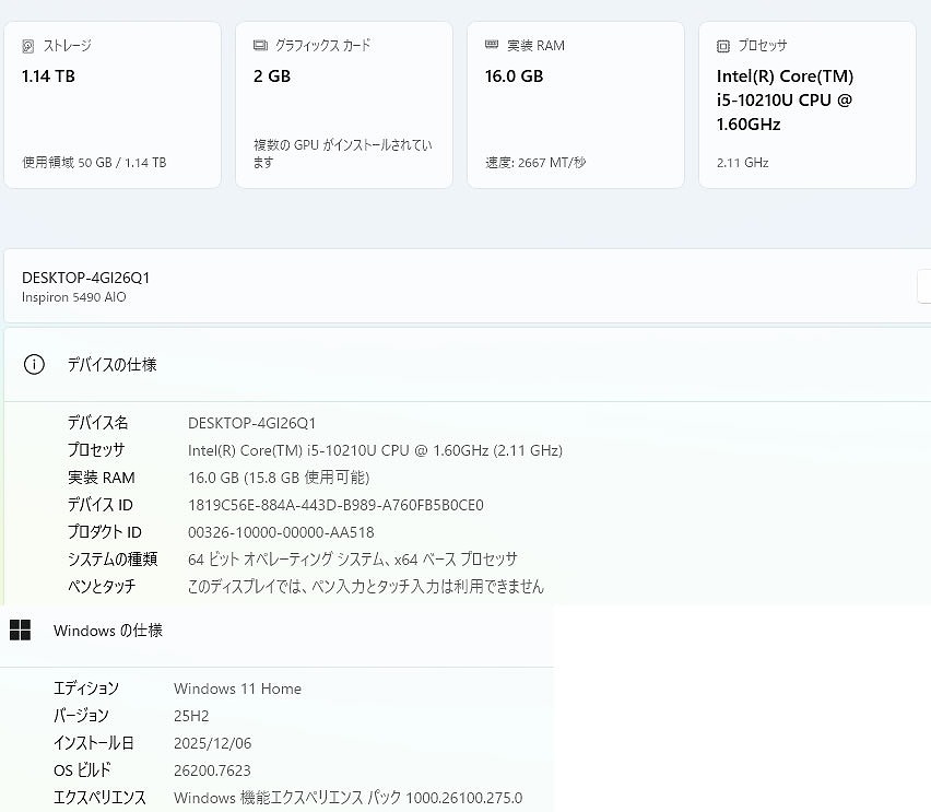 | ◆OS◆ | Windows 11 Home 64 bit搭載 |