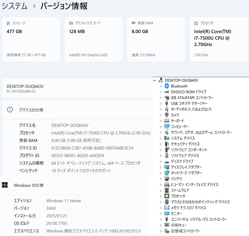 【美品】NEC LaVie NS750GAW 15.6型 (Core i7/SSD512GB/8GB/Webカメラ/Win11/Office2021)